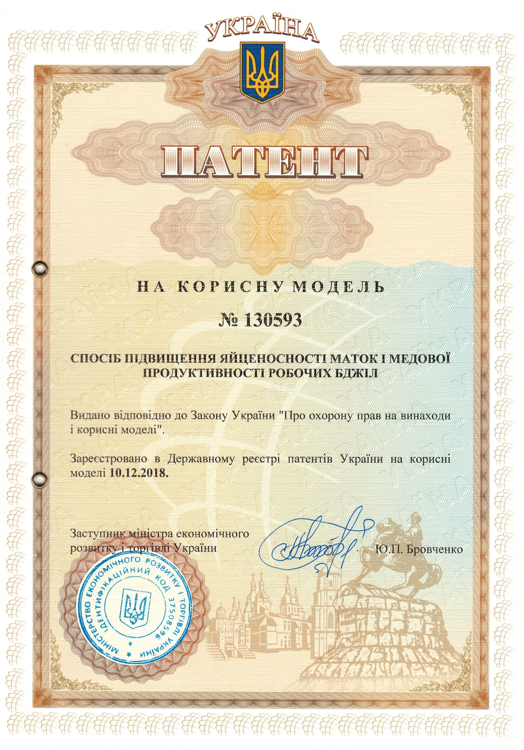 | 8 | Спосіб підвищення яйценосності маток і медової продуктивності робочих бджіл | 130593, 10.12.2018 | На корисну модель |