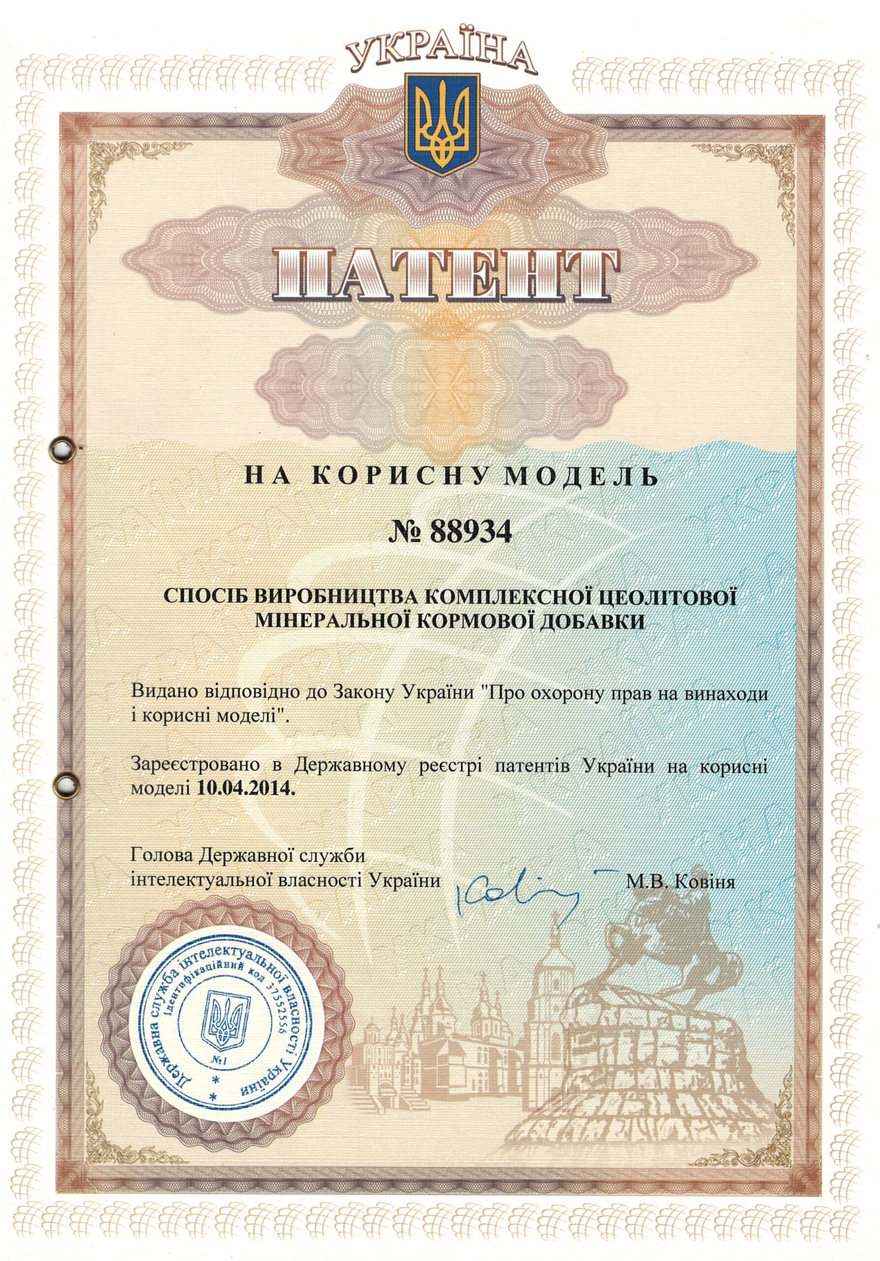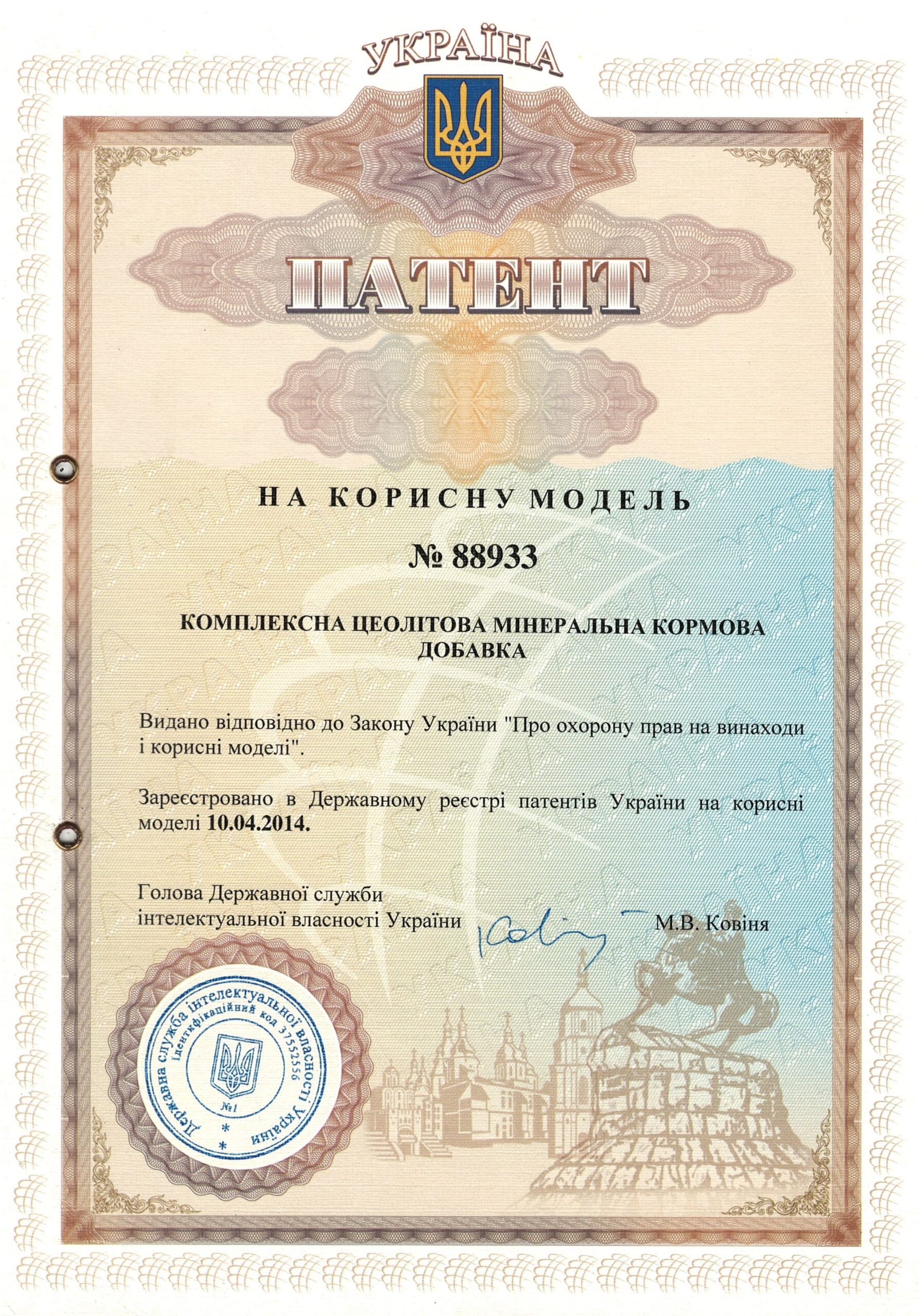 | 3 | Комплексна цеолітова мінеральна кормова добавка для відгодівлі худоби | 88933, 10.04.2014 | На корисну модель |